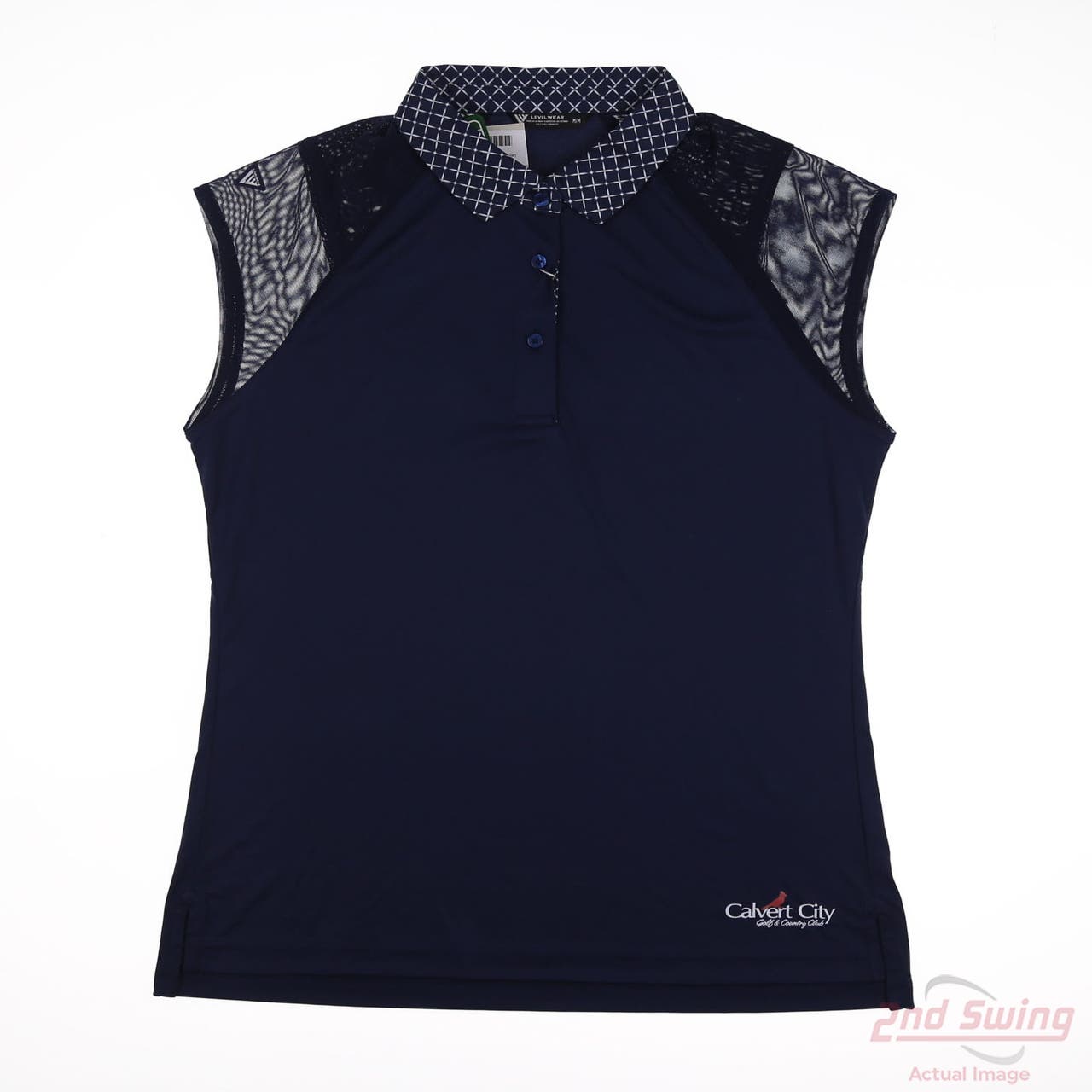 New W/ Logo Womens Level Wear Sleeveless Polo Medium M Navy Blue MSRP $70 (D-12543050957)