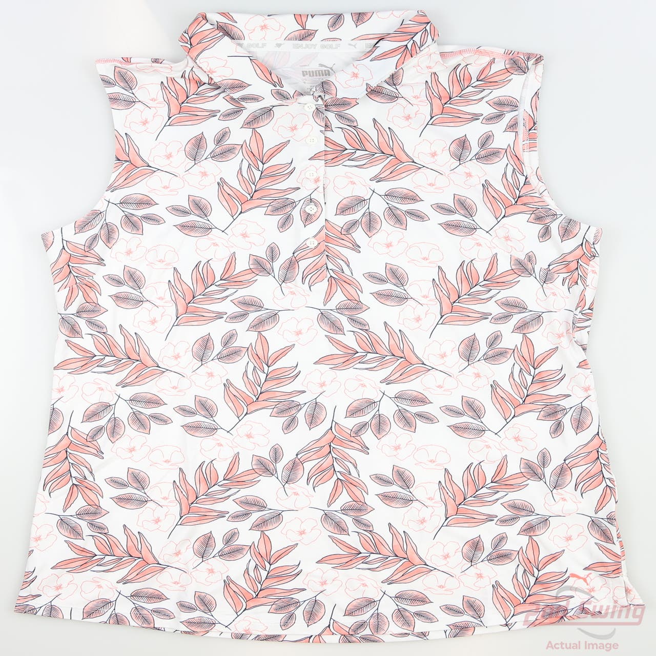 New Womens Puma Cloudspun Floral Sleeveless Polo Small S Bright White/Carnation Pink MSRP $60 (D-62331817847)