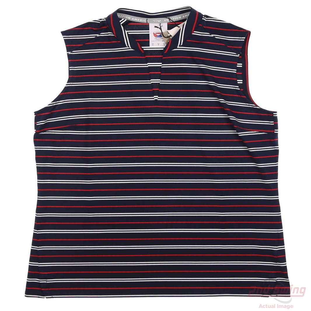 New Womens Puma Sleeveless Golf Polo Small S Multi Navy Blue MSRP $70