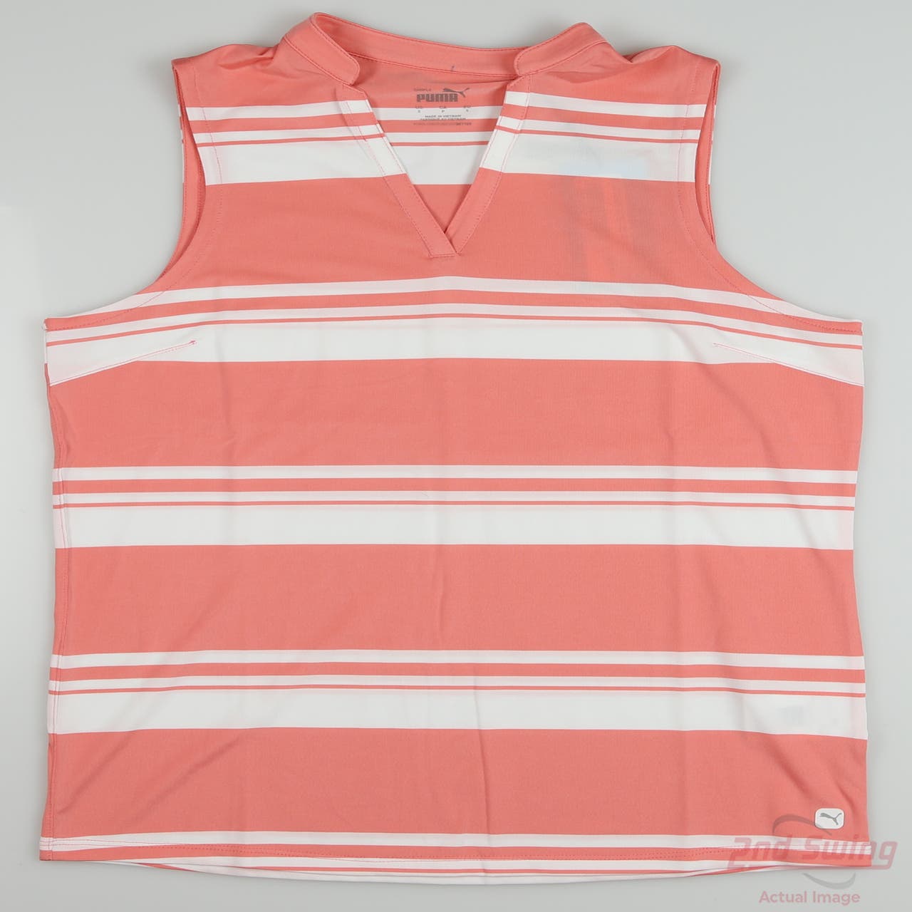 New Womens Puma Cloudspun V Stripe Sleeveless Polo Small S Carnation Pink MSRP $55 (D-82225205367)