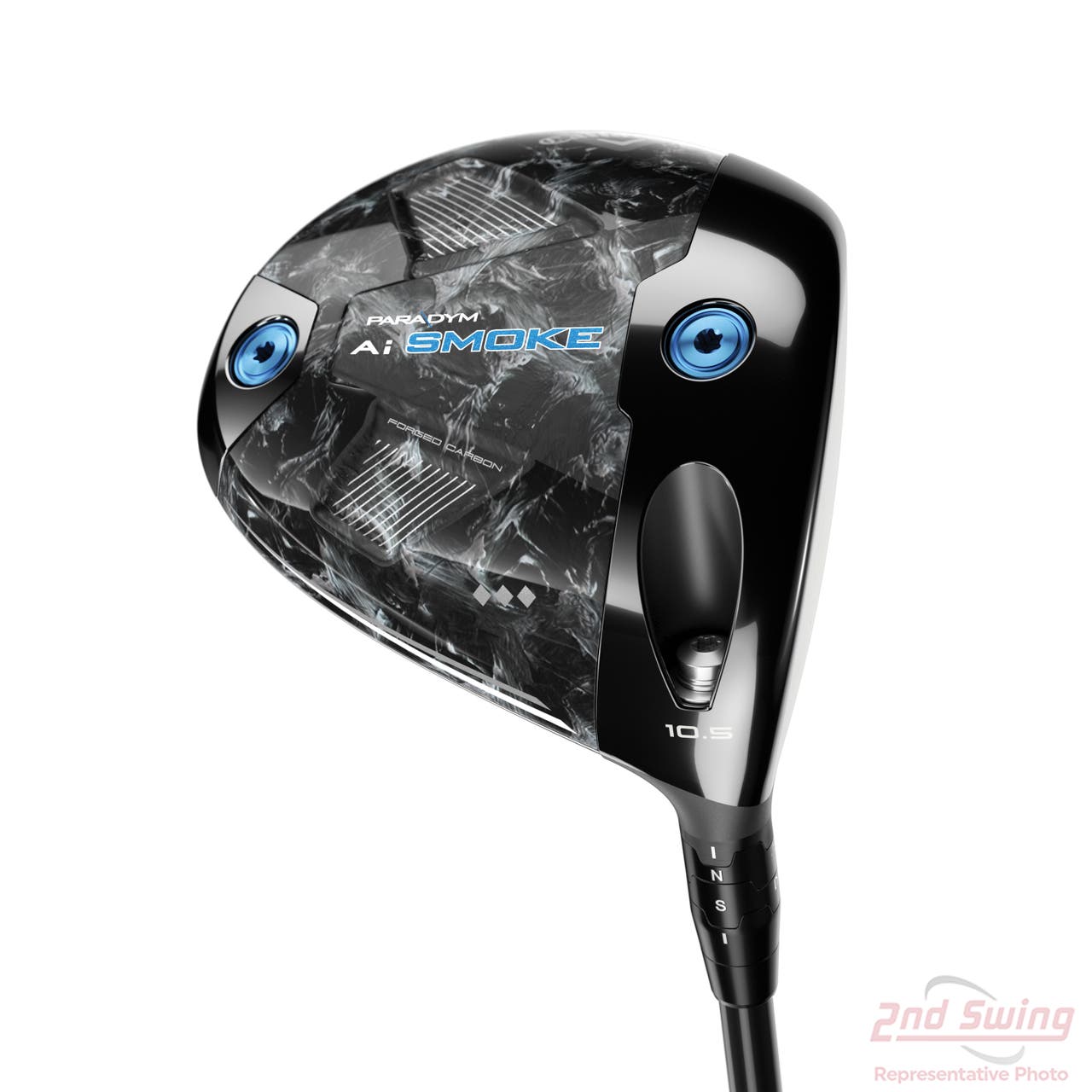 The focal point of Callaway's Paradym Ai Smoke series is its AI design. The innovative Ai Smart Face enhances performance by analyzing swing speed, club delivery, and club face angle data gathered from thousands of real golfers and then using that data to create optimal launch conditions, delivering golfers the desired tight dispersion off the tee. The Ai Smart Face technology introduces micro deflections across the face, which when activated upon impact, optimizes launch and spin for off-center shots, multiple sweet spots across the clubface. The 360-degree Carbon Chassis has undergone refinement, enhancing weight distribution. With an internal titanium support structure making the Carbon Chassis 15% lighter, weight redistribution in the head improves forgiveness and launch conditions. The Paradym Ai Smoke Triple Diamond Driver features a more compact head shape, designed with a neutral to fade biased face. It also features a 14g weight that can be repositioned from the rear to the front, depending on the spin each individual player is seeking.