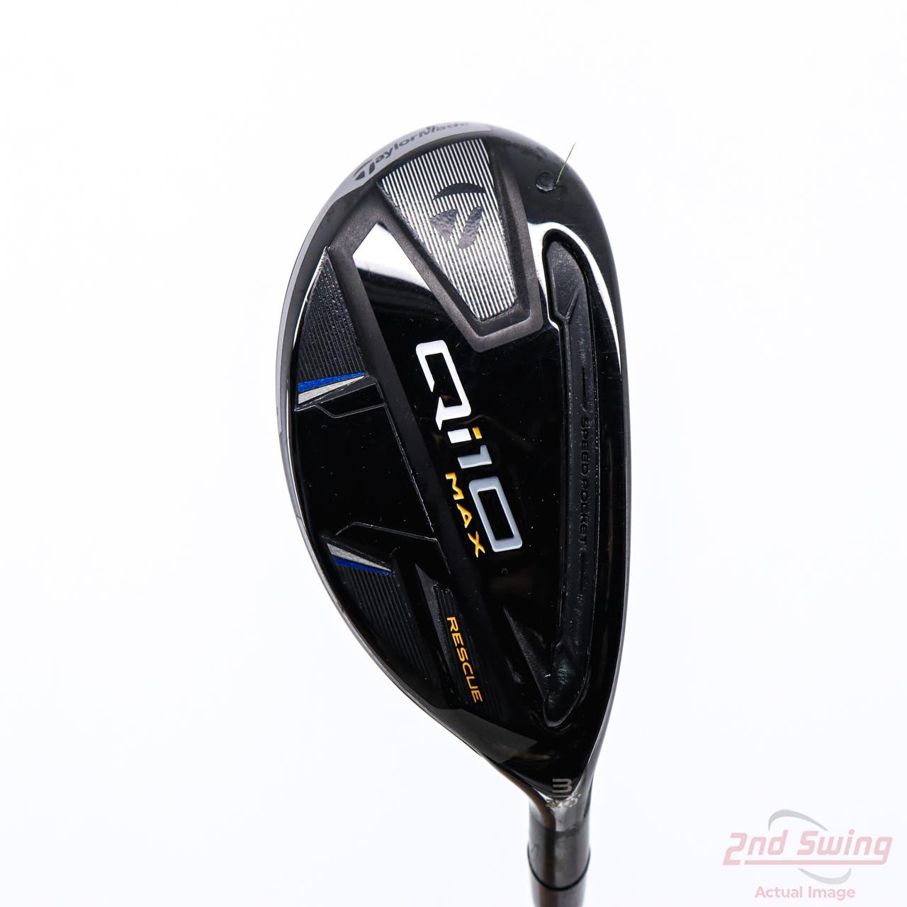 The Qi10 Max Rescue features extreme perimeter weighting and ultra-low CG allowing for maximum forgiveness, high launch and exceptionally long carry distance. A shallower face aids in helping golfers launch it high from any lie. A new larger Carbon Crown frees up mass to enable a lower CG and increased forgiveness, while a laser alignment feature provides a clean address and more precise aim.The Qi10 Max Rescue features proven TaylorMade technologies like: V Steel for improved versatility and turf interaction, the Thru-Slot Speed Pocket which optimizes ball speed on every kind of strike, and Twist Face technology that produces straighter shots through corrective face angles.