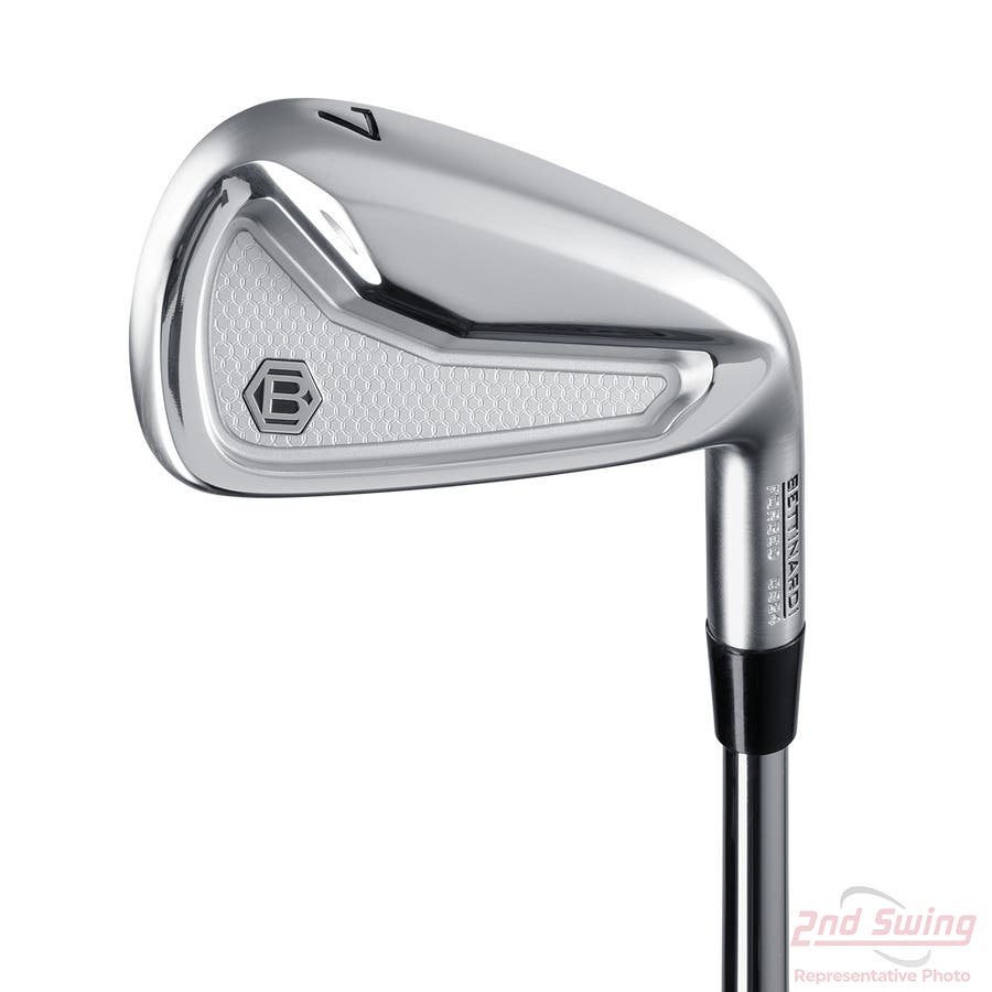 The Bettinardi 2024 Irons showcase advanced technology, starting with the One Piece Co-Forged Solid Body. This unique engineering technique seamlessly co-forges interior components within a 1025 Carbon Steel chassis, creating a solid-body iron that offers a remarkable feel and responsive feedback for the player. The tri-material construction combines high-density Tungsten and Military-Grade Ceramic Matrix Composite (CMC) within the forged Carbon Steel body, resulting in balanced weight distribution that enhances forgiveness while maintaining consistency across the set. Progressive COG Positioning uses loft-dependent placement of Tungsten and CMC components to ensure precise center of gravity (COG) in each iron, promoting more launch in the long irons, controlled backspin in the scoring irons, and consistent gapping throughout the set. The modern head shape, with its clean aesthetics, boosts confidence at address and encourages a higher launch trajectory, leading to greater distance and improved performance on every shot.