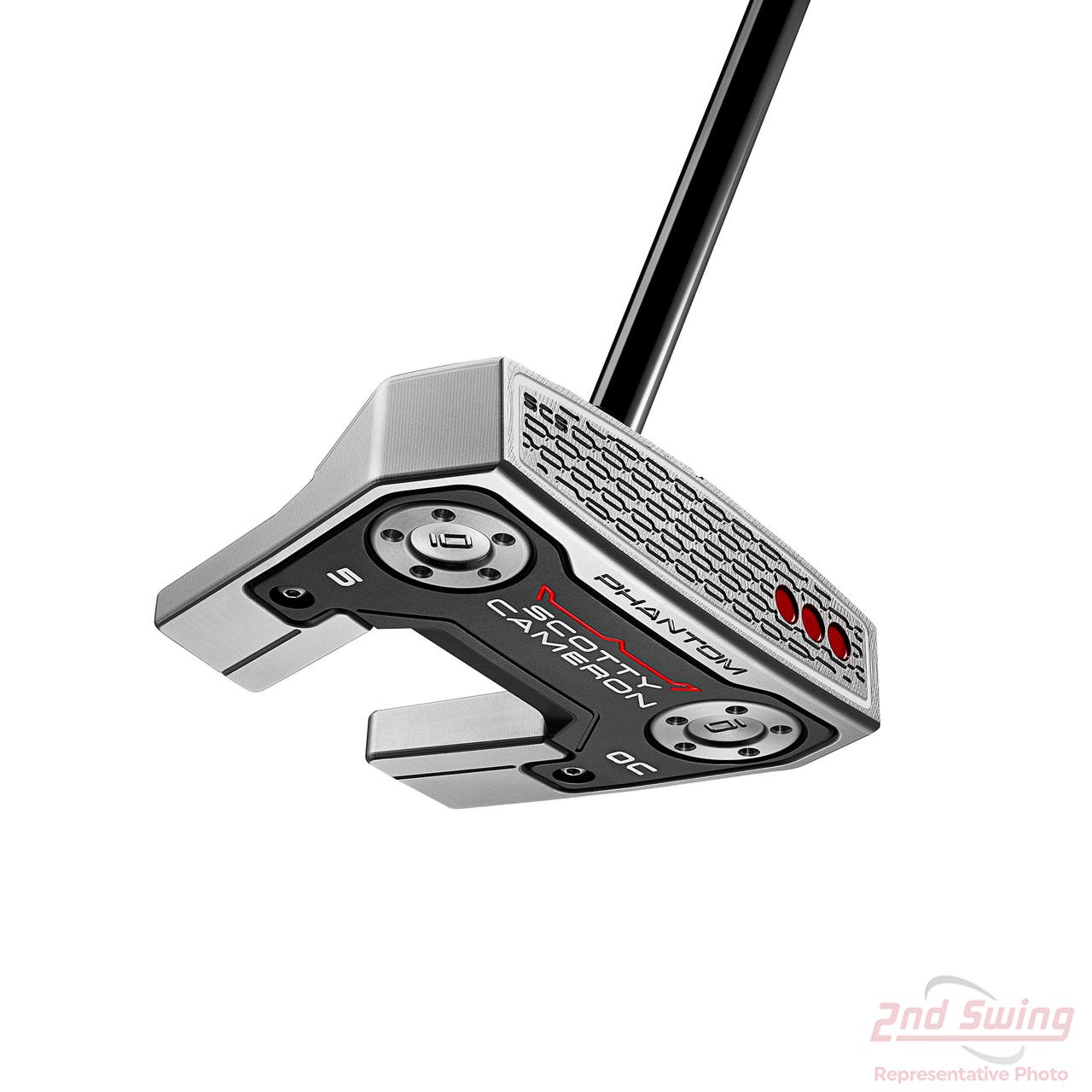 The 2026 Phantom 5 OC Putter is engineered with a full‑face Studio Carbon Steel (SCS) insert that uses chain‑link milling to soften sound, enhance feel, and maintain consistent ball speed by reducing contact points at impact—an innovation refined through extensive testing that began with the 2025 Studio Style line. Its carbon steel construction provides superior vibration damping compared to metals like stainless steel, aluminum, or Teryllium, creating a more controlled, premium strike while preserving the feedback golfers expect from a Scotty Cameron. The redesigned head incorporates Tour‑inspired shaping, including a deeper face, subtly rounded contours, and updated visual cues such as a taller face height and increased topline radius to support better alignment and a smoother path into the ball. A flatter, wider‑area sole—developed with input from Justin Thomas—helps the putter sit squarely and consistently across varying slopes and turf conditions for a repeatable setup. The Phantom 5 OC’s defining feature is its Onset‑Center (OC) shaft design, where a straight shaft is aligned directly over the putter’s center of gravity to deliver ultra‑low torque performance, ideal for golfers seeking a simplified, square‑to‑square stroke. Combining premium craftsmanship, precision‑milled construction, and a stable, compact mallet profile, the Phantom 5 OC delivers exceptional feel, responsiveness, and control.