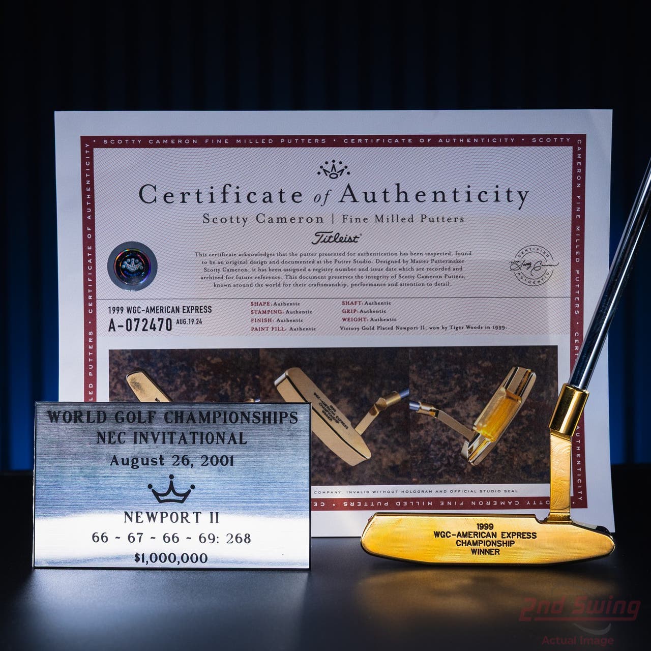 Mint Titleist Scotty Cameron Gold Plated Tiger Woods 1999 WGX American Express Victory Putter Right Handed w/ COA & Name Plate (D-32543868077)