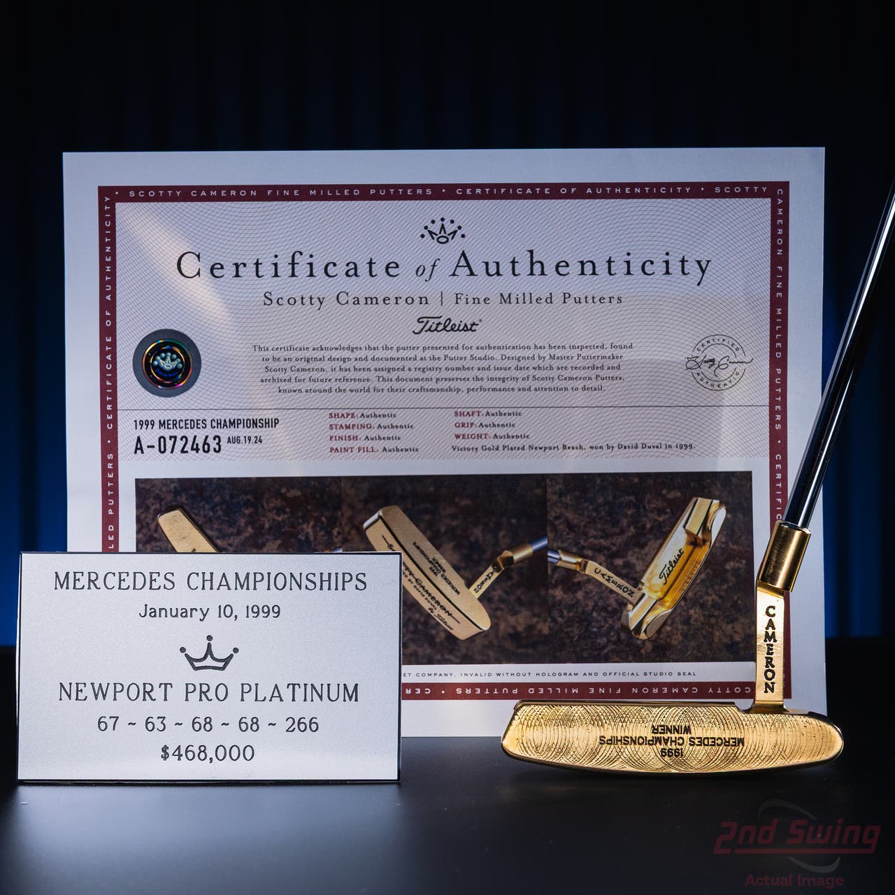 Mint Titleist Scotty Cameron Gold Plated David Duval 1999 Mercedes Championship Victory Putter Right Handed w/ COA & Name Plate (D-32543885603)