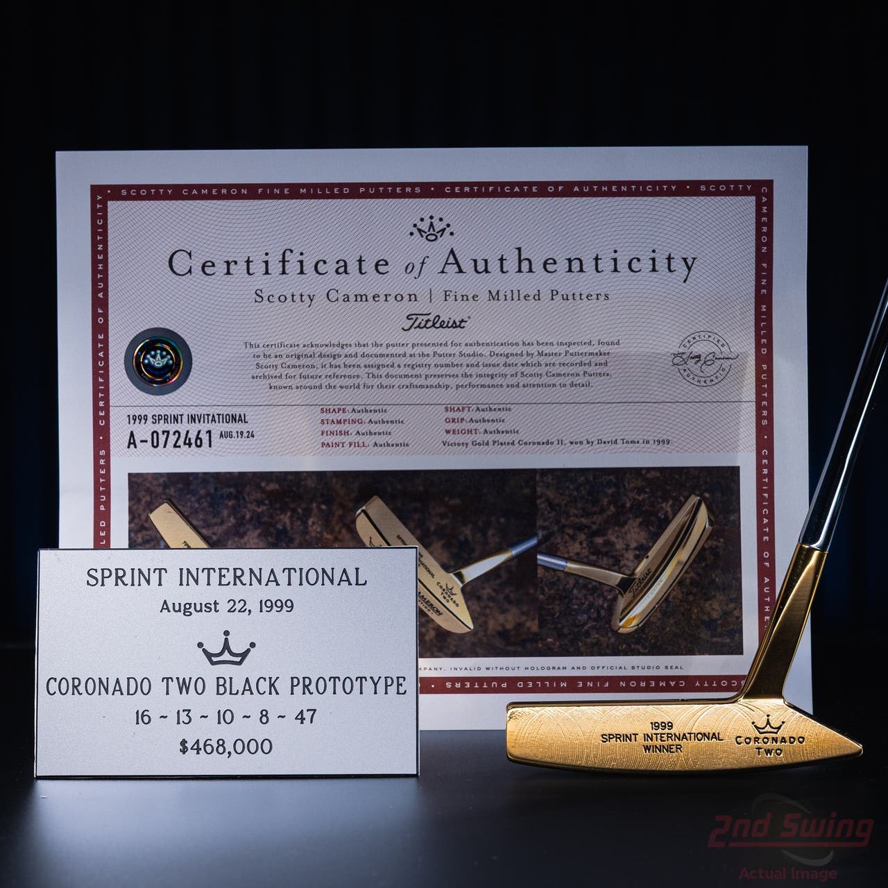 Mint Titleist Scotty Cameron Gold Plated David Toms 1999 Sprint Intl Championship Victory Putter Right Handed w/ COA & Name Plate (D-32543886403)