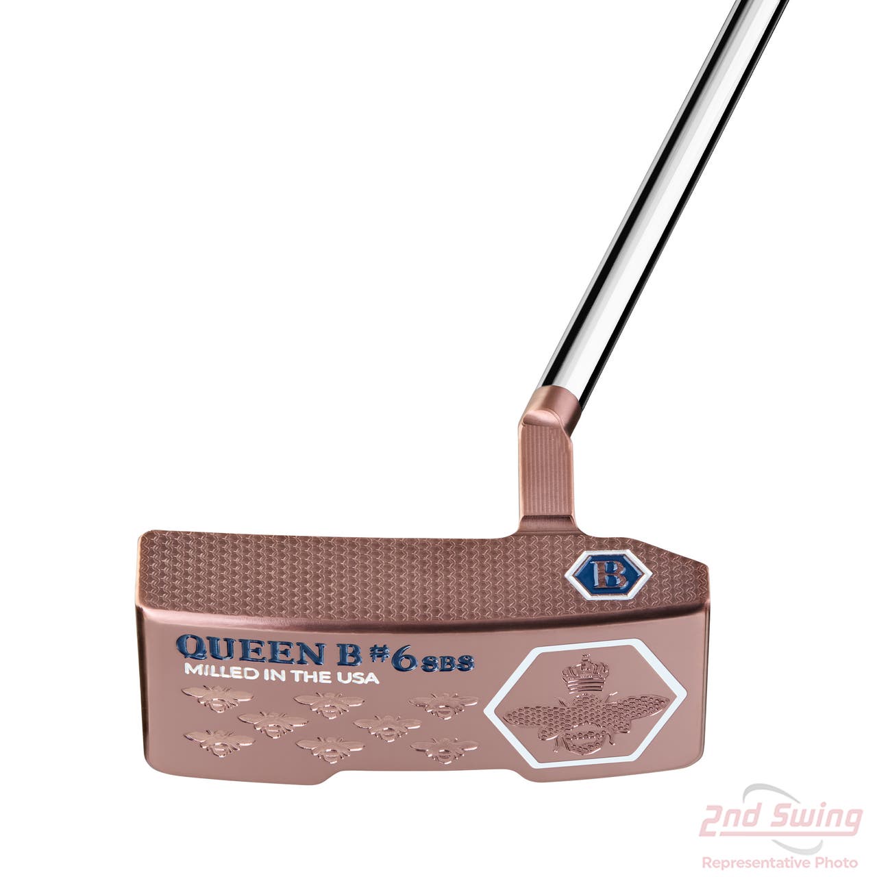 The Bettinardi 2025 Queen B putters are designed for the golfer who demands the ultimate in performance, feel, and beauty. Engineered with a re-imagined center of gravity, these putters promote a more natural alignment and boast a larger sweet spot for incredible forgiveness. The iconic Mini Honeycomb face milling, a Bettinardi hallmark, provides exceptional feel and a firm, yet responsive roll. Crafted from 303 Stainless Steel with a stunning Royal Rose PVD finish, the Queen B series features intricate sole engravings for a touch of unmatched elegance. Premium components, such as a luxurious embroidered magnetic headcover, your choice of a standard Lamkin Deep Etched smooth grip or a Jumbo Lamkin Sink Fit Straight grip, and a tour-grade shaft, complete this masterpiece of putter design.